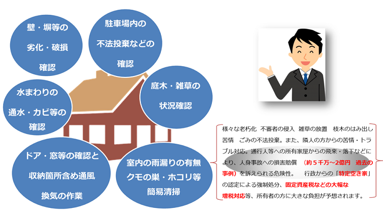 遠方のため、維持管理が難しい そんなお悩みを抱えていらっしゃる方へ 当管理協会へお気軽にお任せ下さい。 |